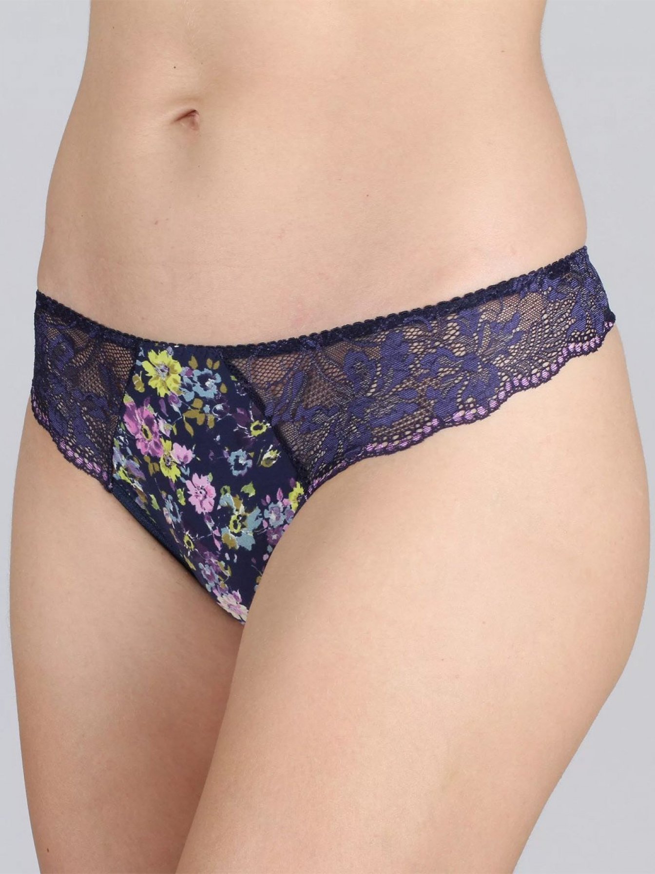 Трусы-стринг из эластичного полотна и эластичного кружева с узким боком.