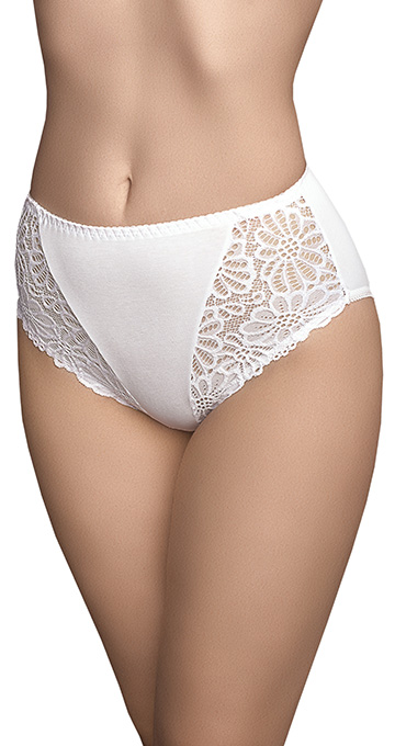 Трусы классические. Передняя деталь состоит из трёх частей: центральная - из хлопка в виде треугольника с основанием вверху, две другие боковые - кружевные части. Задняя деталь из хлопка. Пояс обработан швом «зигзаг». По нижнему срезу передней детали (кружевной части) эластичная тесьма с внутренней стороны, для нежного прилегания по ножке. Нижние срезы задней детали обработаны на плоскошовной машине, что позволяет данную модель рекомендовать под облегающую одежду.