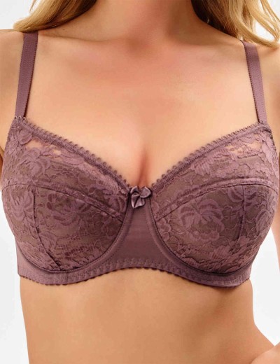 Бюстгальтер балконет, выполнен из эластичного полотна и неэластичного кружева. Чашка бюстгальтера уплотненная (тонкий поролон), встроенные каркасы поддерживают грудь. Внутренняя сторона чашки дублируется хлопком. Пояс бюстгальтера обеспечивает правильное расположение и надежную фиксацию на теле. Бретели без отделки, регулируются по длине. Модель позволяет максимально открыть грудь, обеспечивает хорошую поддержку, делает грудь более эффектной и округлой, увеличивает полноту. Предназначена для использования под одежду с низко вырезанным прямым или полукруглым декольте. Подходит для любого типа груди.
