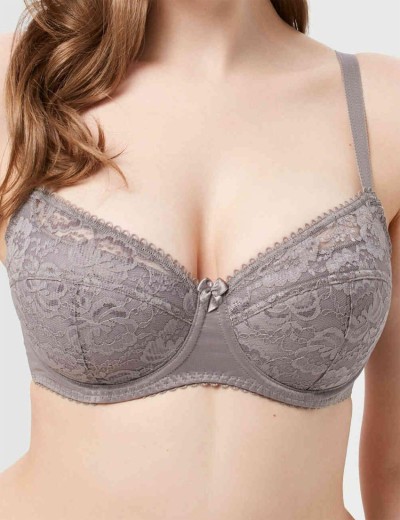 Бюстгальтер из эластичного кружева и эластичного и неэластичного трикотажных материалов. На каркасах. Мягкие чашки с двойным членением и боковой корректирующей деталью. Отделка - бантик.