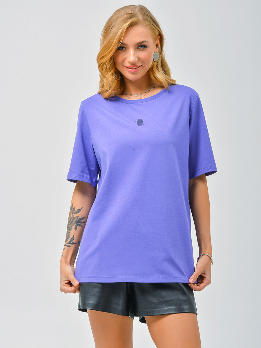 Фуфайка женская с круглым вырезом и коротким рукавом. Изделие полуприлегающего силуэта будет не заменимо на отдыхе, в быту и для занятий спортом.