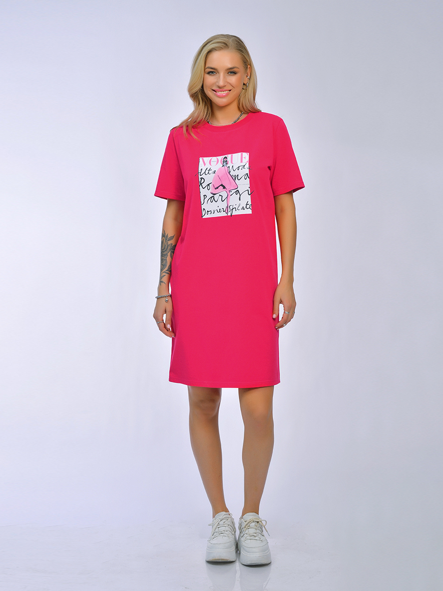 Фуфайка удлиненная женская с круглым вырезом и коротким рукавом. Изделие полуприлегающего силуэта будет не заменимо на отдыхе, в быту и для занятий спортом.