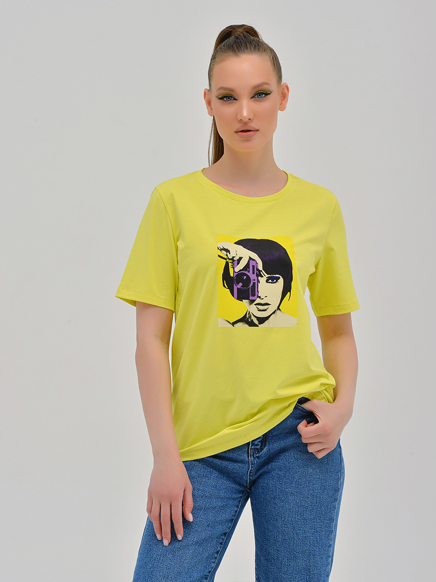 Фуфайка женская с круглым вырезом и коротким рукавом. Изделие полуприлегающего силуэта будет не заменимо на отдыхе, в быту и для занятий спортом.