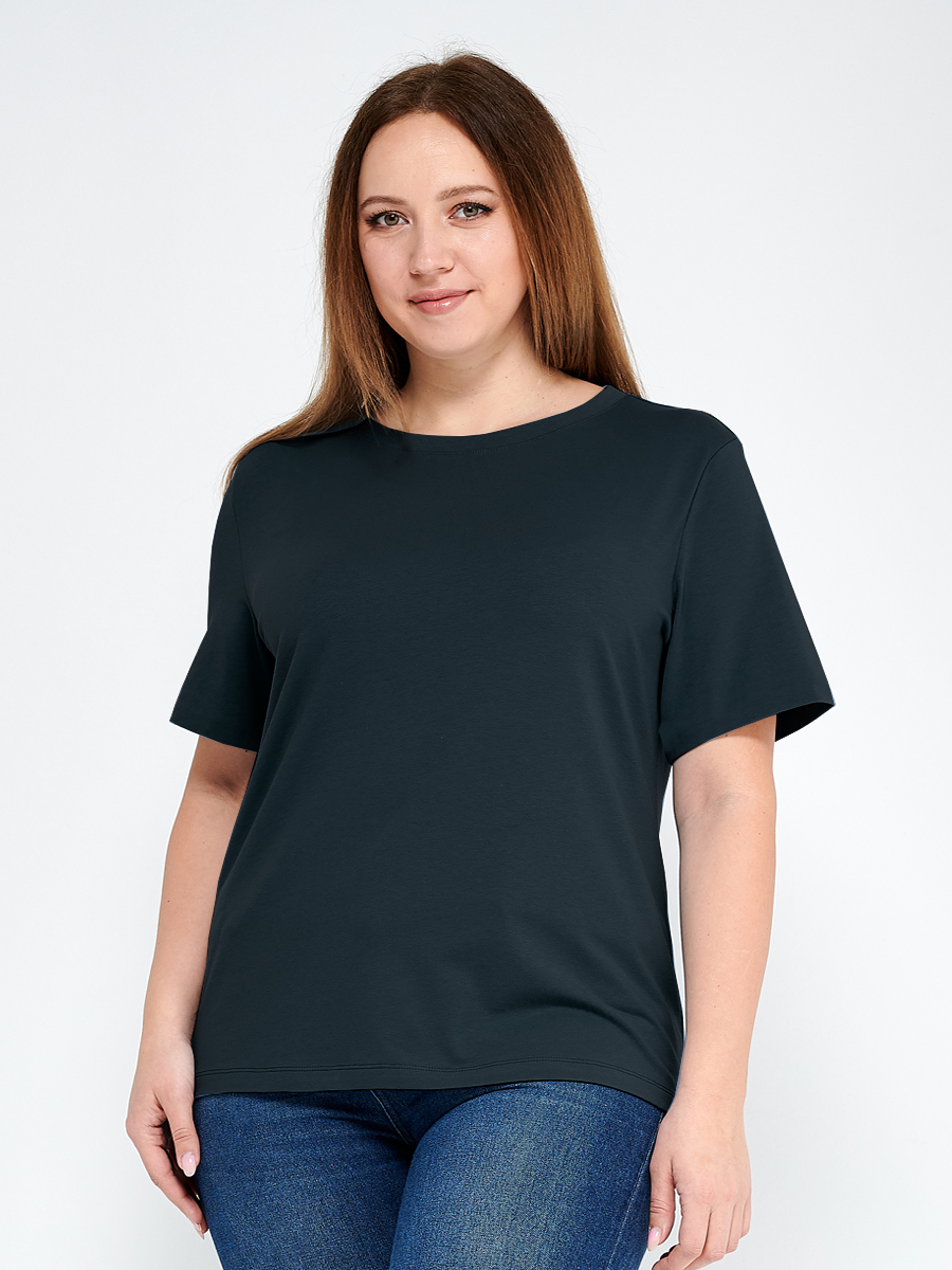 Фуфайка женская с круглым вырезом и коротким рукавом. Изделие полуприлегающего силуэта будет не заменимо на отдыхе, в быту и для занятий спортом.