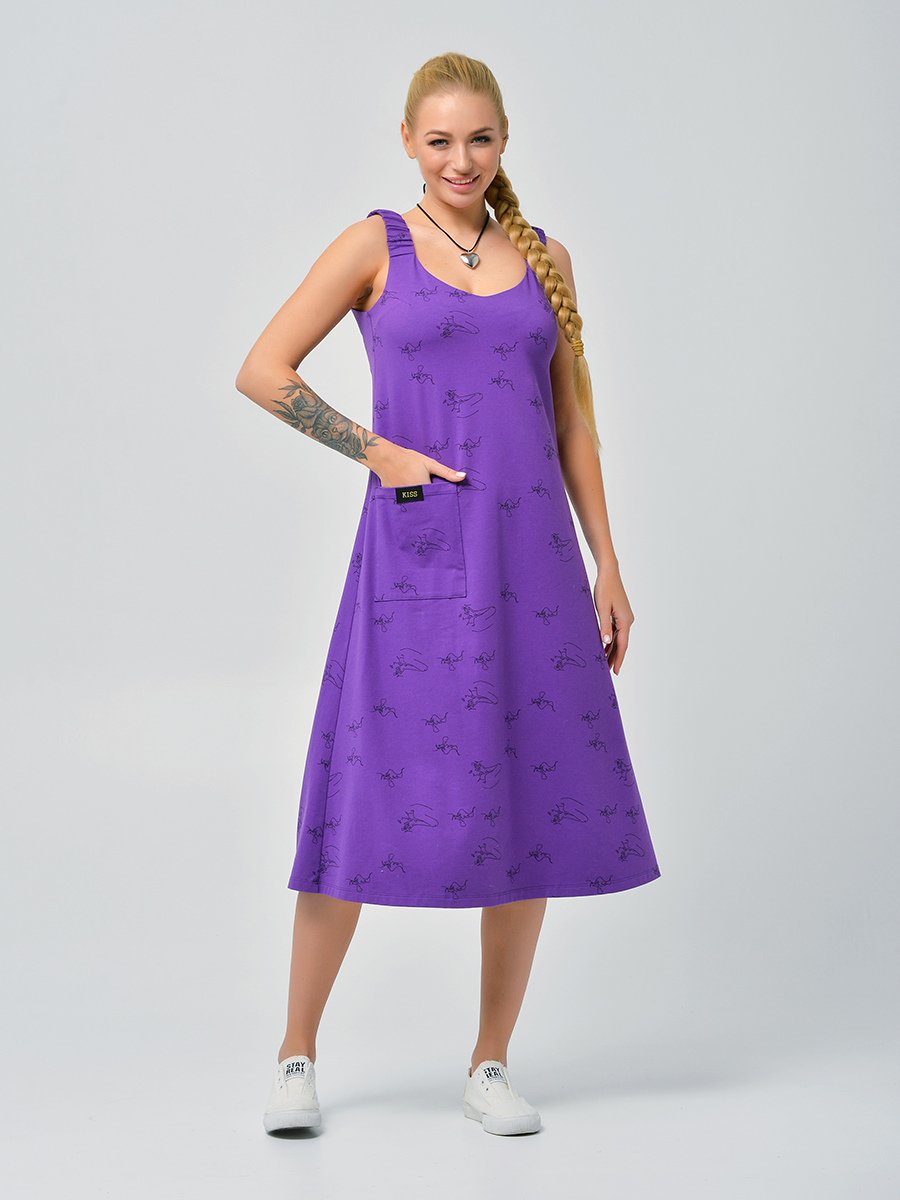 Сарафан женский длинный из набивного хлопка с эластаном. Безумно удобный за счёт свободного кроя сарафан на бретельках трапецевидного силуэта. Модель украшена накладным карманом с нашивкой (KISS), спинка приталена, разрез для свободы движений. Сарафан будет прекрасно смотреться на всех типах женских фигур, позволяя чувствовать себя более чем комфортно в домашней обстановке или на прогулке. Сарафан с длинной миди и открытой спинкой создаст незабываемый образ, который будет актуален как для летних прогулок, так и в качестве домашней одежды.