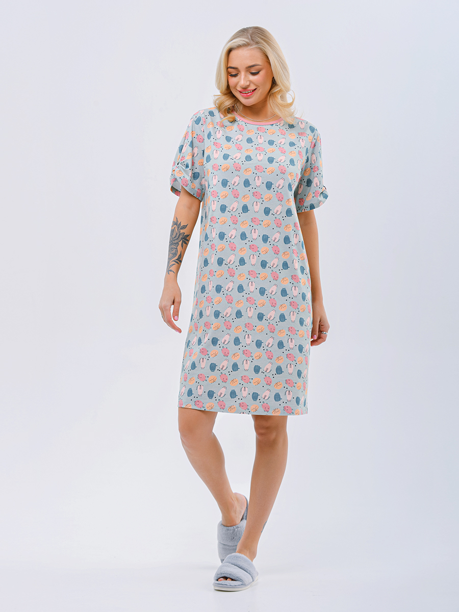 Элегантное домашнее платье из набивного полотна с принтом забавных котиков — это прекрасный выбор для тех, кто ценит уют и стиль в повседневной жизни. Платье имеет прямой крой и длину миди, что делает его универсальным для различных случаев. Акцентные рукава с перемычкой по низу добавляют модели оригинальности и подчеркивают её уникальность. Изготовленное из хлопка высокого качества пенье с добавлением эластана, платье не только приятное на ощупь, но и обладает хорошими гигроскопическими свойствами, обеспечивая комфорт в течение всего дня. Простую и гармоничную форму подчеркивает стильный принт.