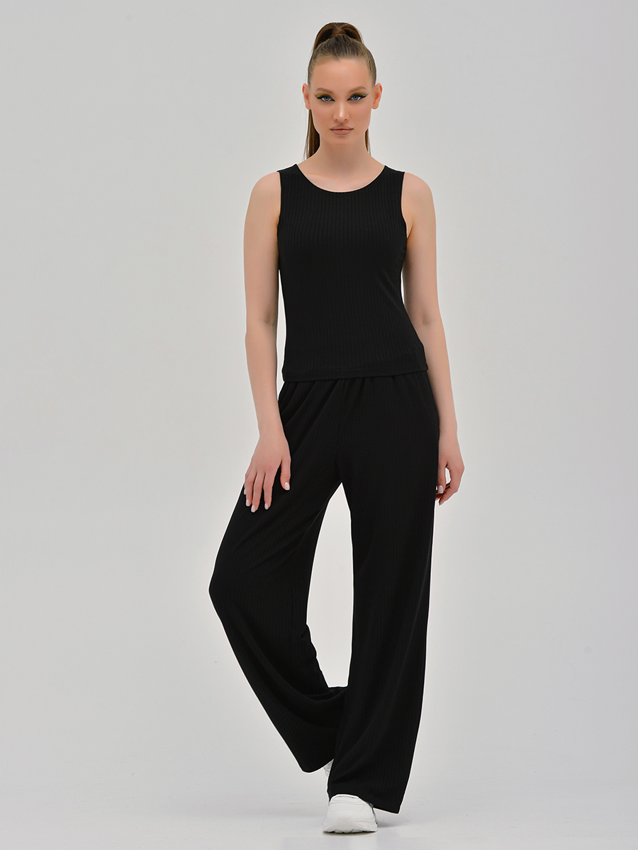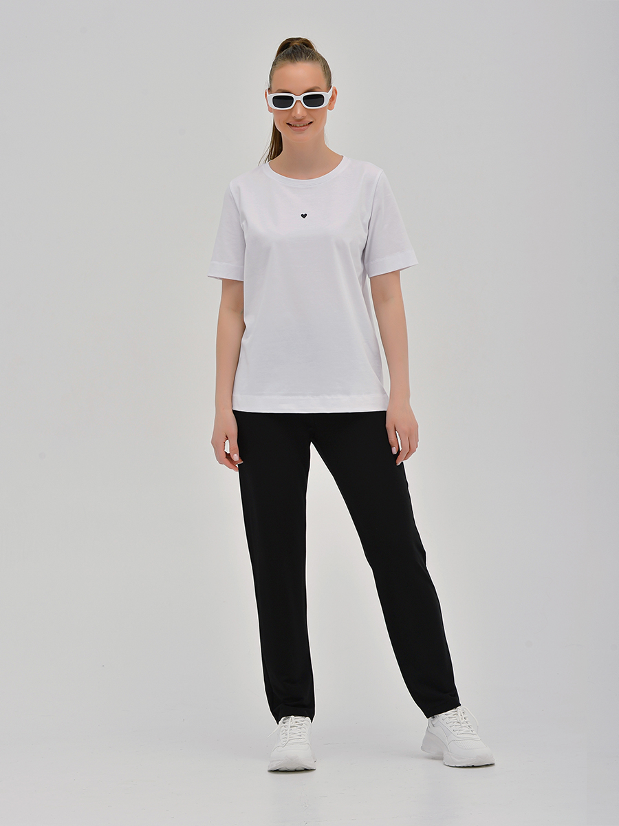 Прямые классические брюки без карманов. Пояс на эластичной тесьме. Простой лаконичный крой делает брюки максимально практичными и универсальными.