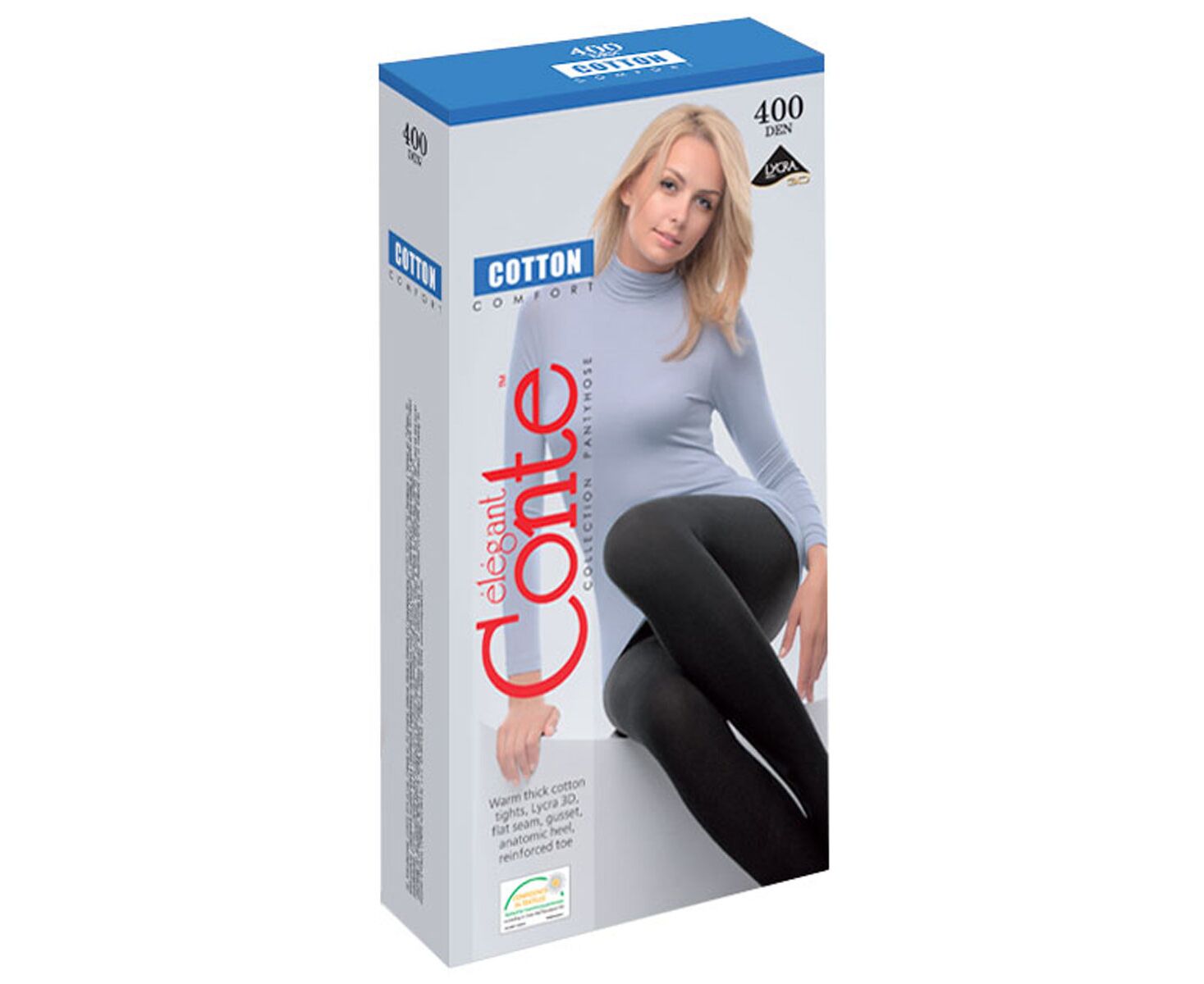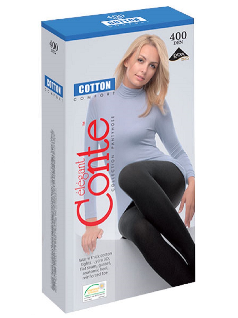 Классические плотные колготки Cotton 400 ден с максимальным содержанием хлопка 90% и Lycra 3D подарят ощущение тепла и комфорта вашим ножкам. Колготки с Lycra 3D более прочные, эластичные, лучше облегают ножки, сильнее сопротивляются растяжкам. Приятные на ощупь, гладкие непрозрачные колготки с плоским швом, хлопковой ластовицей, с анатомической пяткой и уплотненными мысками. Однородные по всей длине, без шортиков. Размер 5-6 со вставкой. Зимние хлопковые колготки Cotton отлично сочетаются с шерстяной и трикотажной одеждой. Самые смелые модницы могут позволить себе мини-юбку в холодное время года.