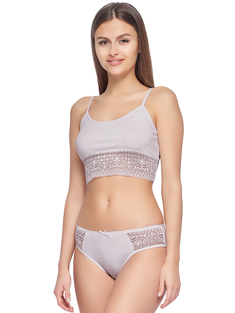 Майка - топ на тонких регулируемых бретелях. По низу изделия пристрочено кружево.
