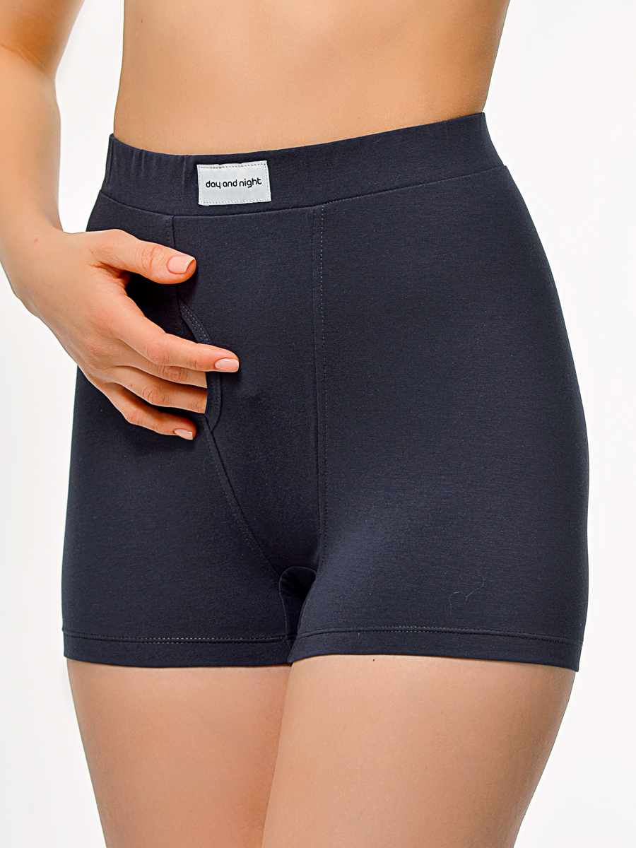 Трусы – шорты с высокой посадкой в стиле Бойфренд, из хлопковой ткани компакт пенье премиум качества. Двойная деталь по переду изделия имитирует мужской гульфик, что добавляет яркости и индивидуальности. Мягкий эластичный пояс.