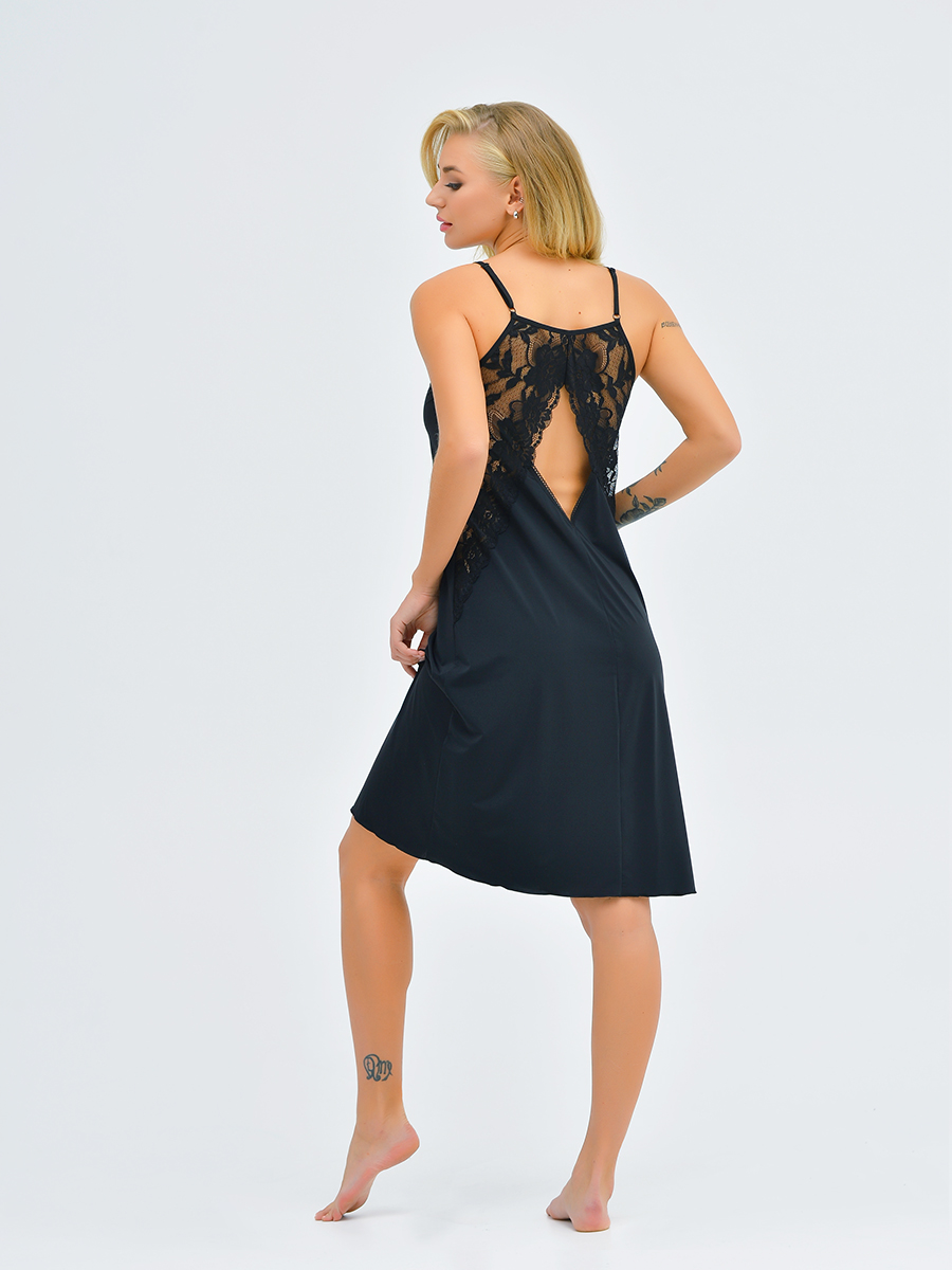 Нежная сорочка с удобным кроем с оригинальной спинкой.