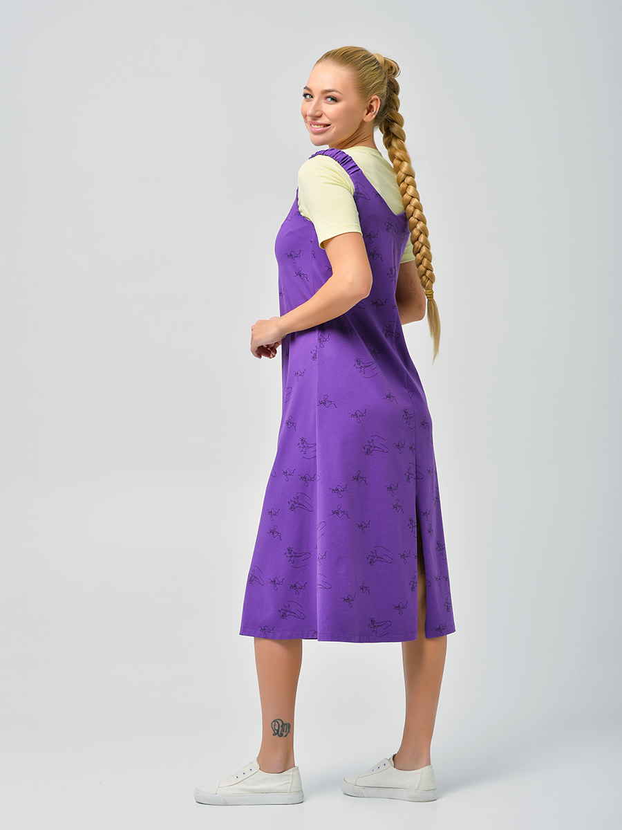 Сарафан женский длинный из набивного хлопка с эластаном. Безумно удобный за счёт свободного кроя сарафан на бретельках трапецевидного силуэта. Модель украшена накладным карманом с нашивкой (KISS), спинка приталена, разрез для свободы движений. Сарафан будет прекрасно смотреться на всех типах женских фигур, позволяя чувствовать себя более чем комфортно в домашней обстановке или на прогулке. Сарафан с длинной миди и открытой спинкой создаст незабываемый образ, который будет актуален как для летних прогулок, так и в качестве домашней одежды.