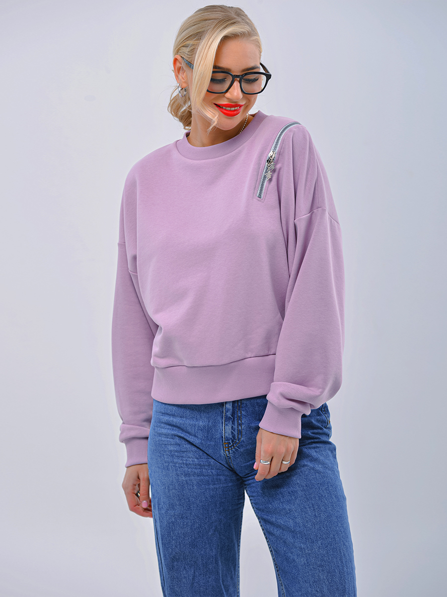 Женский молодежный свитшот из мягкого футера петля – идеальный выбор для комфортного и стильного образа. Длина свитшота чуть ниже талии, что позволяет легко сочетать его с различными элементами гардероба. Расширенный трапециевидный рукав с трикотажным манжетом создает уютный и современный силуэт. Широкий манжет по низу изделия добавляет акцента и придает свитшоту неповторимый стиль. Изюминкой модели является двухзамковая серебристая застежка-молния на левом плече, которая позволяет экспериментировать с образом: свитшот можно носить как с расстегнутой, так и застегнутой молнией. Это дает возможность создания различных стилей – от романтичного до casual.