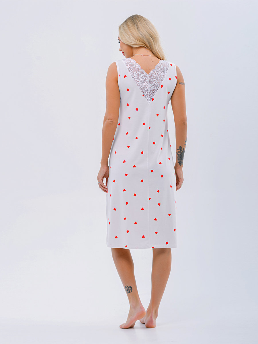 Сорочка изготовлена из мягкого, струящегося набивного полотна Rayon, обеспечивающего комфорт и приятные ощущения на коже. Кружево эффектно обрамляем горловину как спереди, так и сзади. V-образный вырез горловины визуально удлиняет шею и создает стройный силуэт, а комфортная длина изделия придает ощущение свободы и легкости.