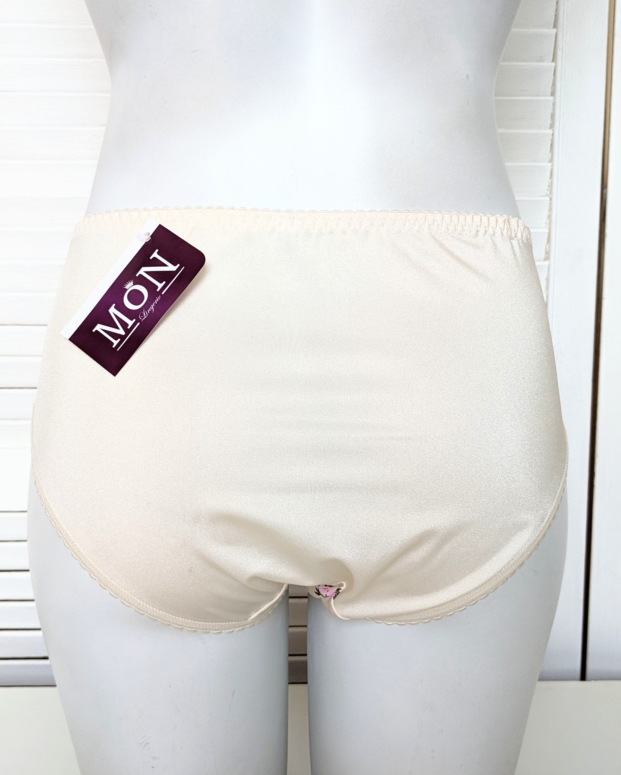 Гладкие трусы со средней линией талии. Выполнены из эластичного полотна. "Ножки" обработаны эластичной лентой, подкладка ластовицы из хлопка.