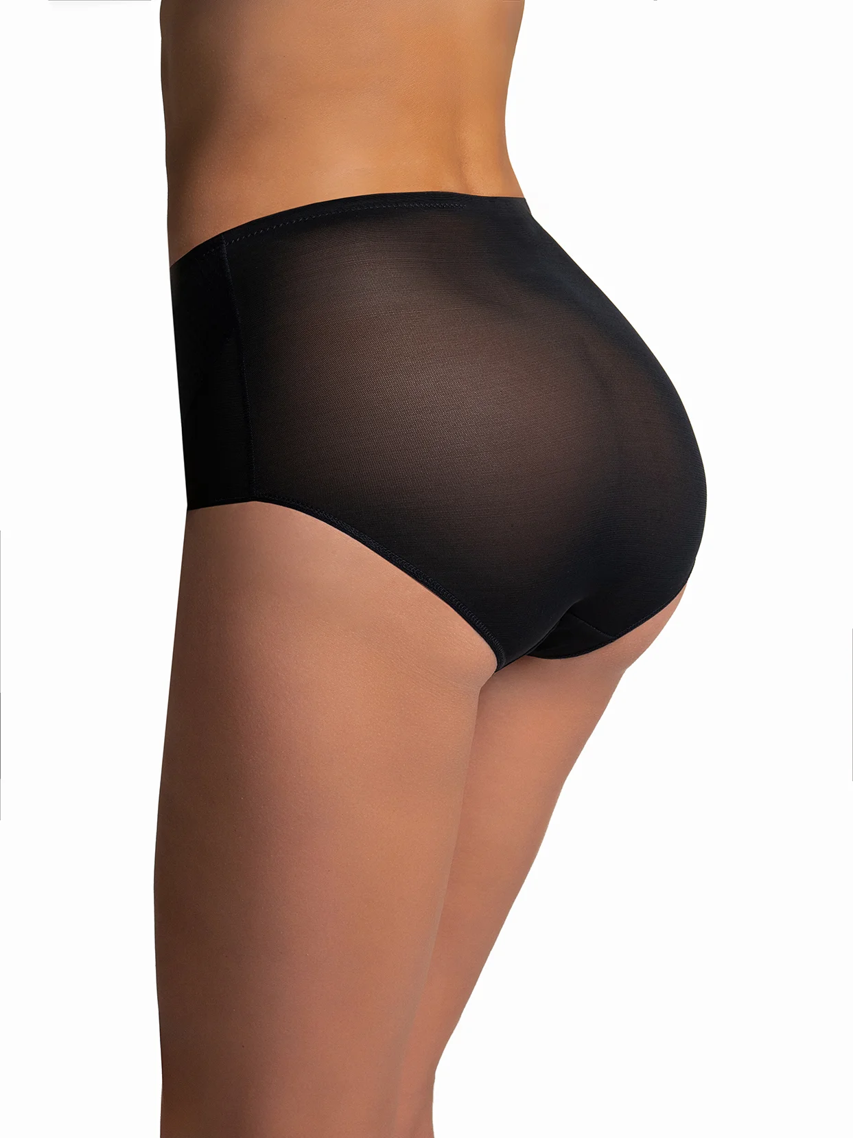 Трусы-макси. Спереди - жаккардовая вставка, которая эффективно моделирует и корректирует область живота. Сзади- высококачественная сетка, которая тоже обладает корректирующим свойством.