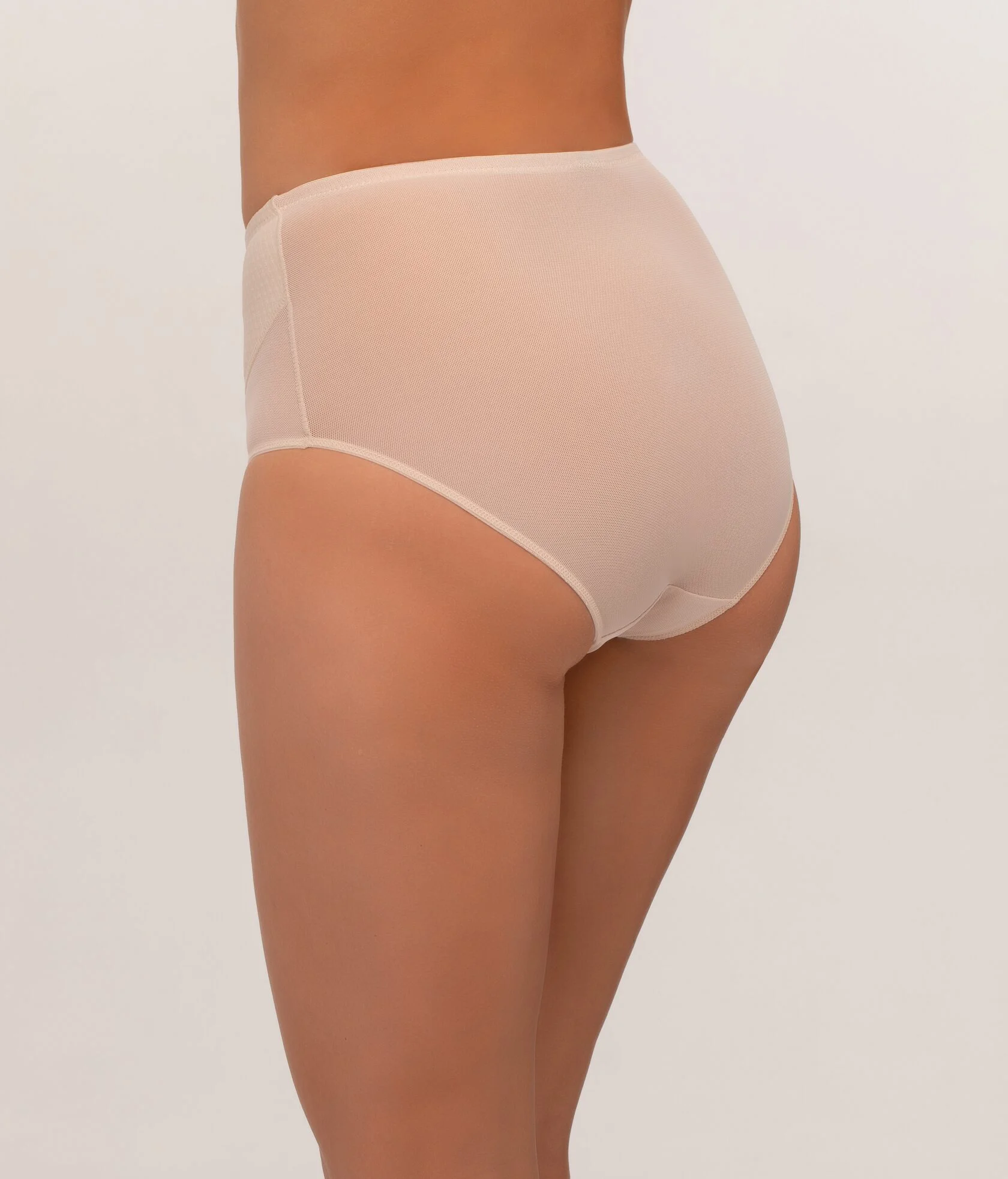 Трусы-макси. Спереди - жаккардовая вставка, которая эффективно моделирует и корректирует область живота. Сзади- высококачественная сетка, которая тоже обладает корректирующим свойством.