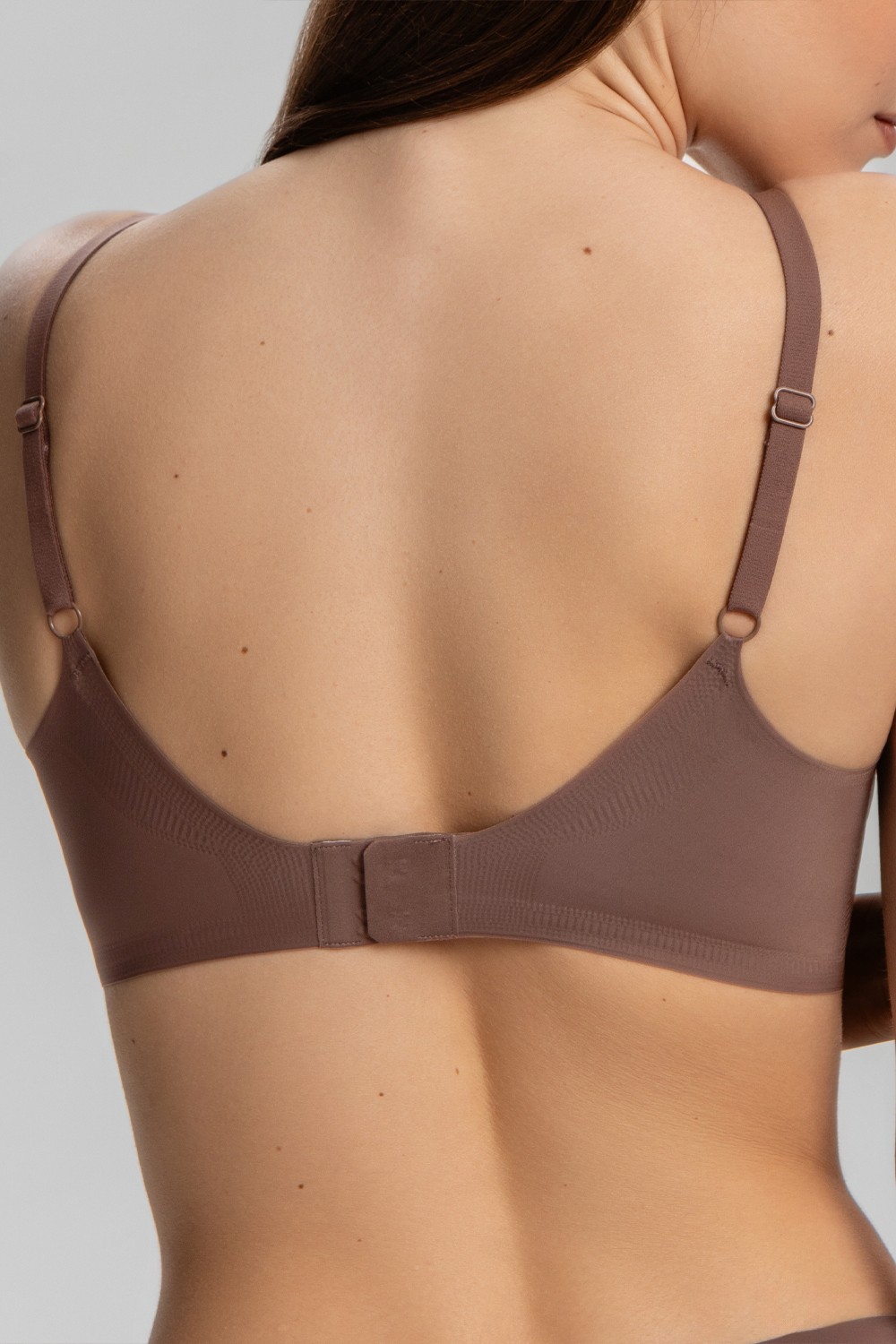 Бесшовный бюстгалтер с V-образным вырезом. Выполнен из ультратонкой микрофибры, практически незаметен на теле. Силиконовые вставки формируют естественную форму груди. В комплекте съемные дышащие, перфорированные вкладыши. Спинка в форме леотард.