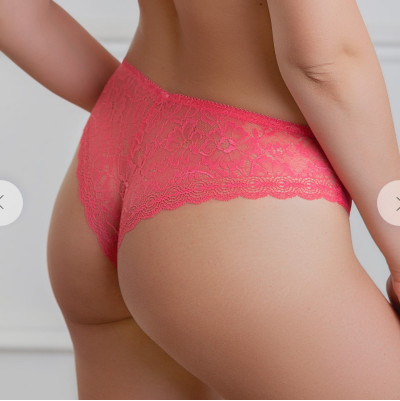 Удобные бразильяна, средней посадки, выполнены спереди из сетки с треугольником из кружева, сзади из кружева.