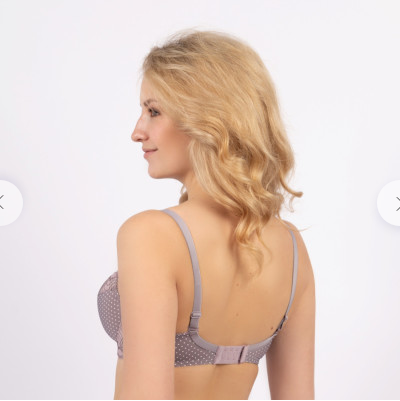 Бюстгальтер выполнен из фибры польского производителя в сочетании с эластичным плотным кружевом компании Lauma Fabrics. Кружево и рисунок горошек сочетаются и взаимодополняют друг друга, создавая яркий женственный образ.