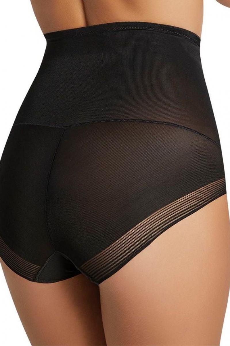Корректирующие трусы с завышенной талией. Сетка в области ягодиц. По верху трусов силикон, который не позволяет изделию сползать. Сильная степень коррекции живота.